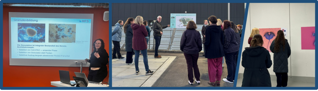 Bei der Besichtigung der seit 2025 fertig ausgebauten ARA Kloten-Opfikon erhielten wir spannende Einblicke in das Sanierungs- und Ausbauprojekt. Mercedes García und Ricarda Hartmann von der HFS Aqua AG stellten das Projekt anschaulich vor.